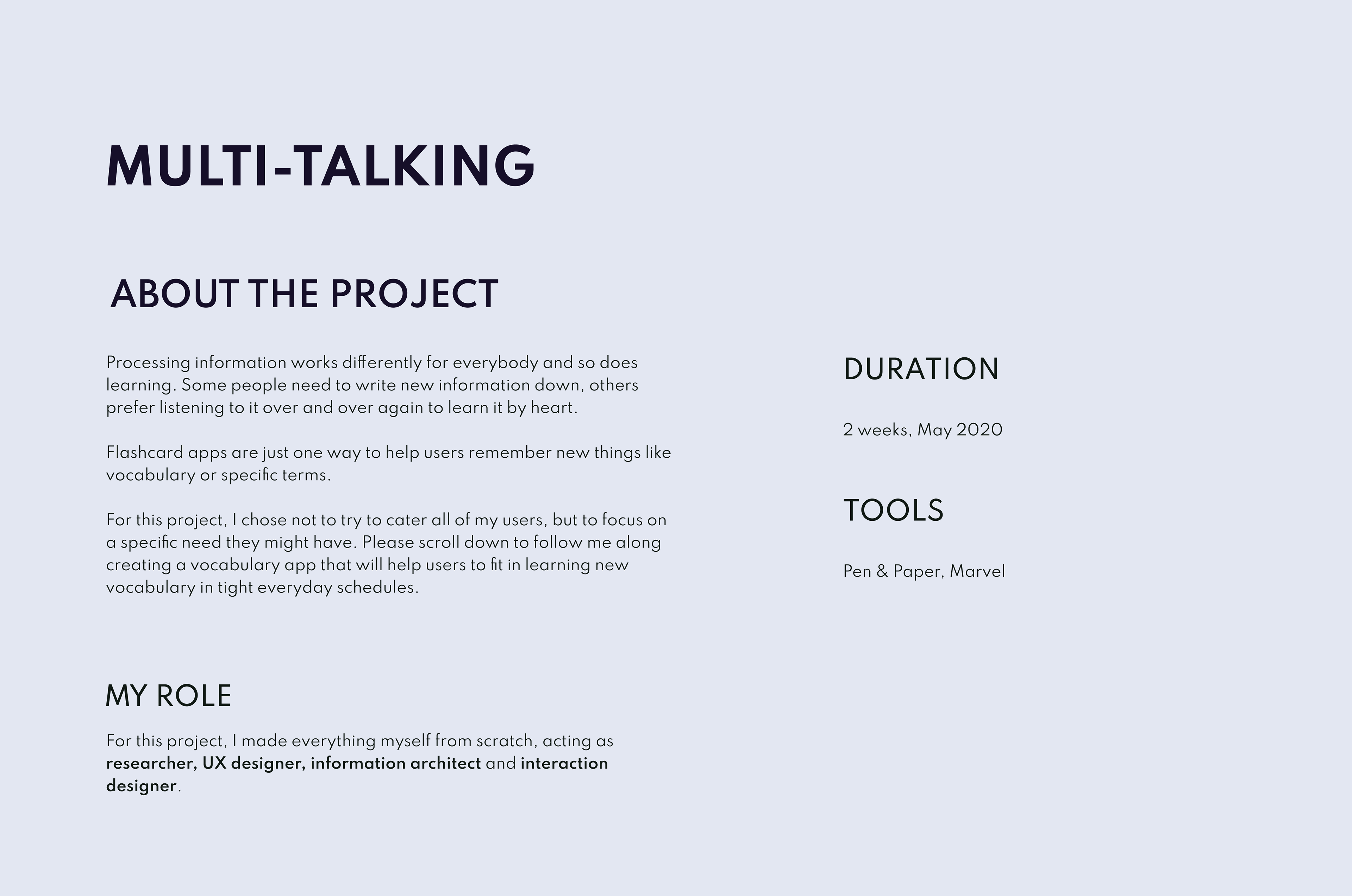 UX focused project, design of a vocabulary app, that uses audio only options to help users to learn new vocabulary when they have little time.